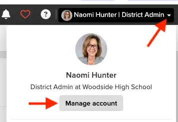 Step 2: Click on the arrow next to your profile at the top right of the page, and click on Manage Account.